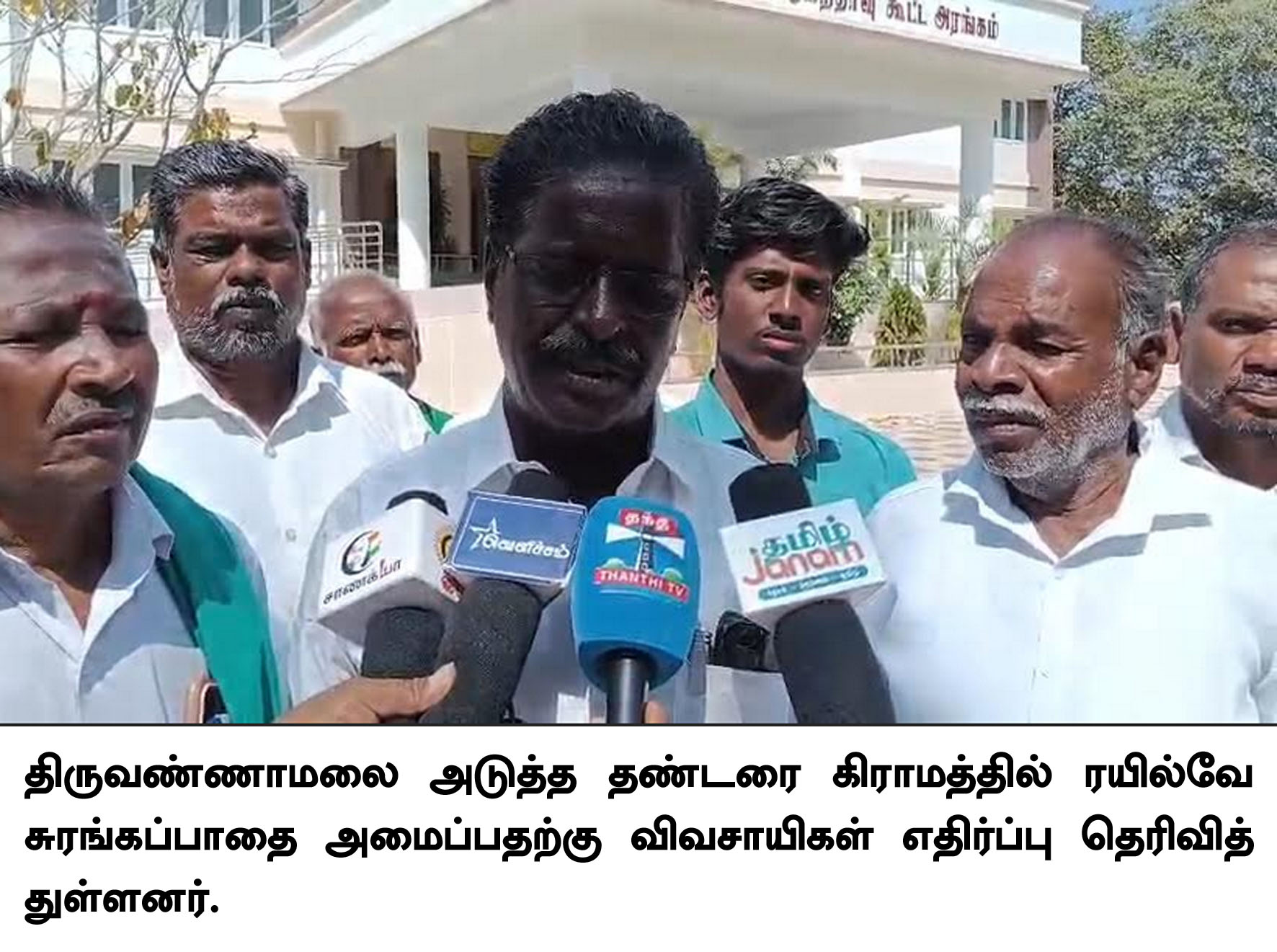 திருவண்ணாமலை அடுத்த தண்டரை கிராமத்தில் ரயில்வே சுரங்கப்பாதை அமைப்பதற்கு விவசாயிகள் எதிர்ப்பு தெரிவித்தனர்.